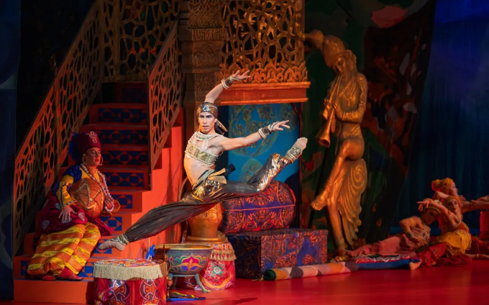 Все это восточное роскошество воссоздает на сцене вместе с художником Анатолием Нежным на основе декораций Бакста Андрис Лиепа. А самарские артисты тонко и точно воспроизводят на сцене партии из легендарного балета серебряного века.