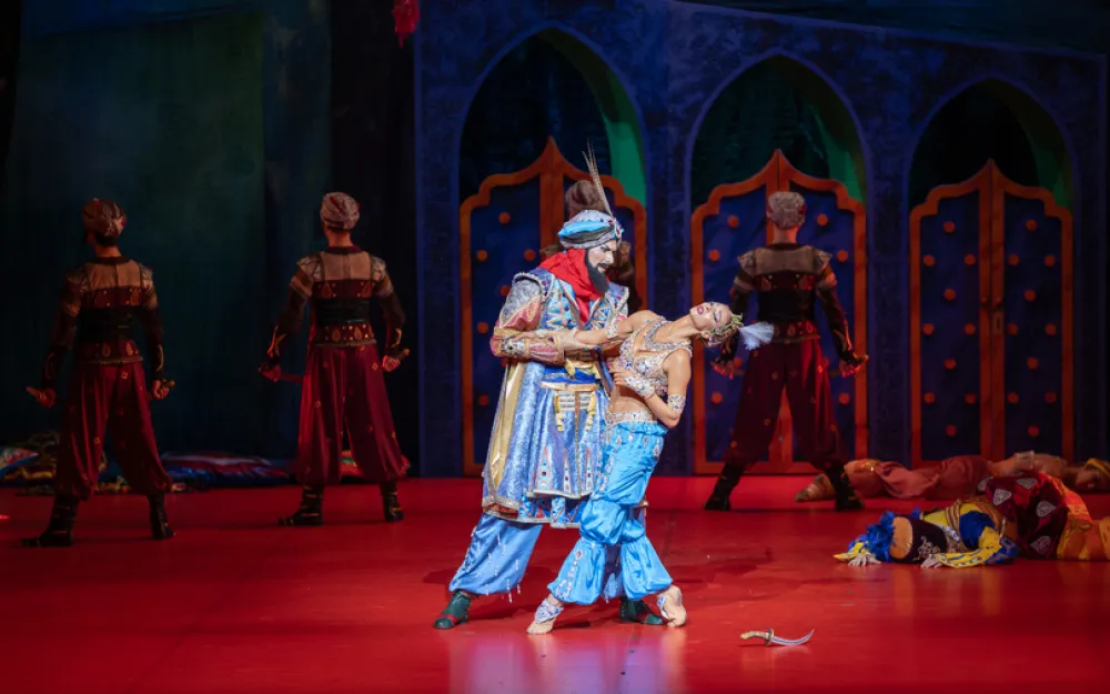 Под стать ему и Зобеида, тоже бразильская танцовщица Виктория Мартин, тоже показавшая на сцене свой великолепный темперамент и утонченную восточную пластику. Хотя несколько больше в образ белой женщины и любимой жены Шахрияра (Дмитрий Пономарёв) попадала Вероника Землякова (второй состав).
