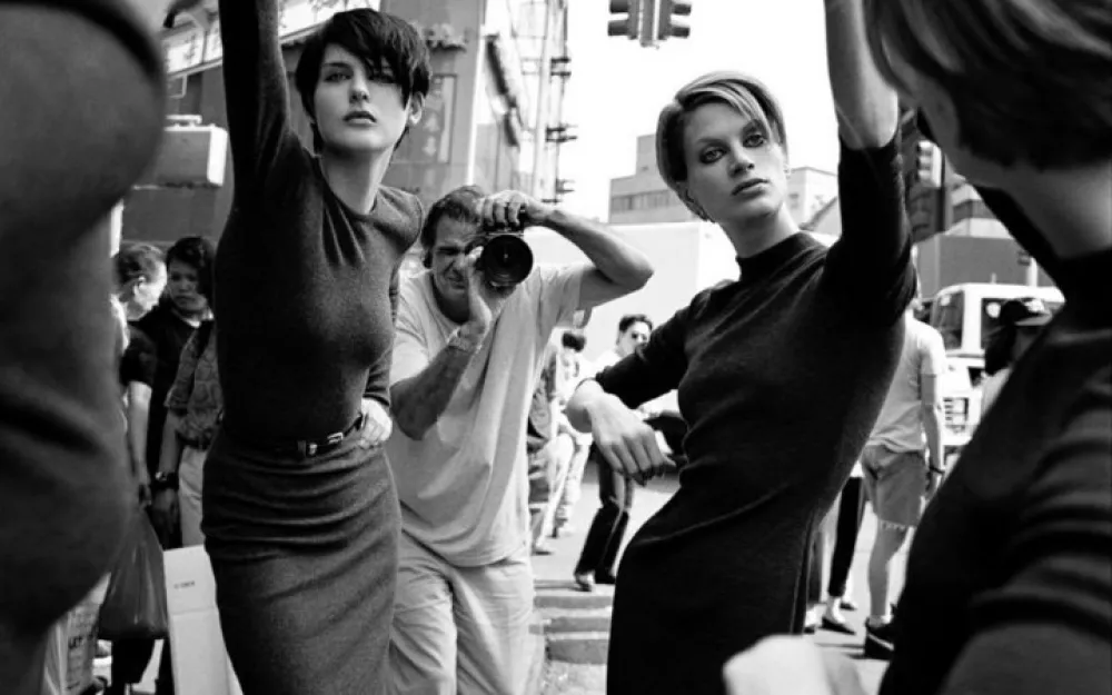 Переносимся в Париж 1963-го — Мелвин Соколски создает серию «В деревьях». На снимках модели - в пластиковых шарах, которые парят над улицами города. Серия — редкий пример ретушированных фото на экспозиции. Здесь со снимков убран трос, на котором крепились шары. Но ценна здесь не только сама идея летающих красоток, сколько совершенно искренняя реакция прохожих, которую мы тоже наблюдаем на снимках — удивление, шок, страх — калейдоскоп эмоций. Остров Сан-Бартелеми, 1995-ый год, куда регулярно приезжал фотограф Патрик Демаршелье и делает изысканный снимок «Патрик, Стелла и Кристен». Не сразу понимаешь, что происходит и как это сделано. Две модели держат зеркало, в кадр попал и сам фотограф — он снимает отражение модной троицы. В этом снимке, кажется, отразилась не только красота женских тел в простых, но элегантных платьях — здесь мотив двойственной реальности, ведь модная фотография — это сказка, которую в жизни достичь нелегко.
