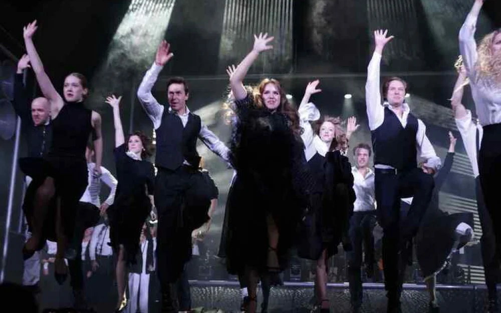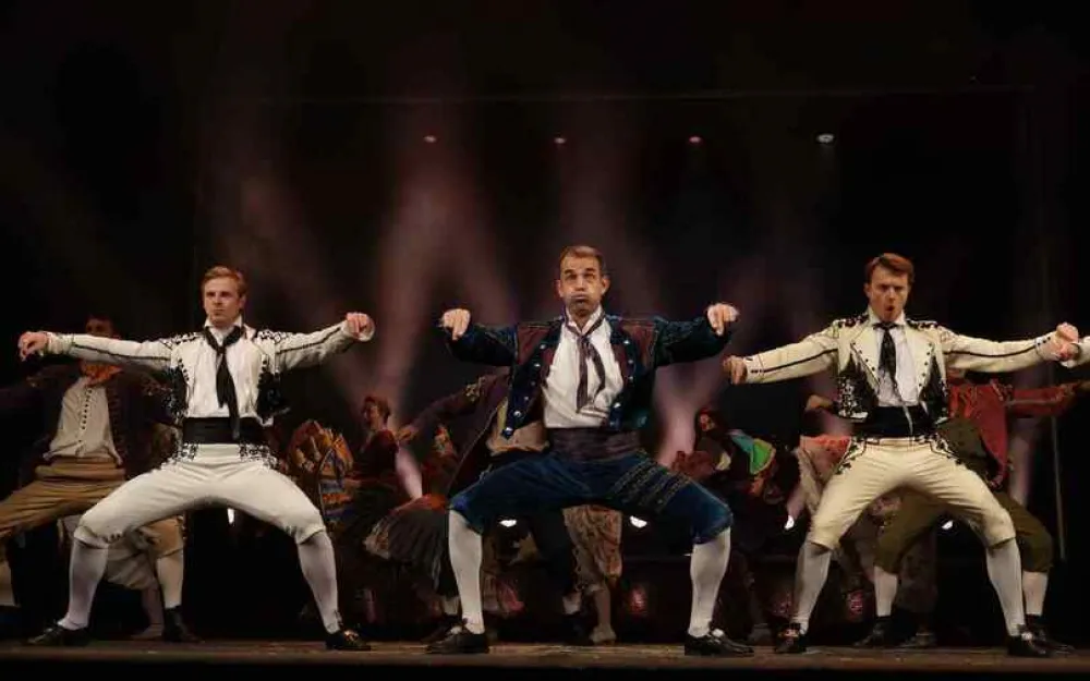 И тут же радость, мощь театра в номерах из хитов Марка, с которыми в диалог вошел новый худрук. Диалог во времени, но на одном пространстве получился искрометный, остроумный, витальный. Своей игрой его поддержали корифеи: Дмитрий Певцов в образе кабальеро (а до этого алкаша с большой компанией из песни Высоцкого) пластически соревновался с тройкой молодых конкурентов (Станислав Тикунов, Андрей Миронов-Удалов, Илья Халмурзаев), после чего все вливались в стремительную Арагонскую хоту из «Женитьбы Фигаро».