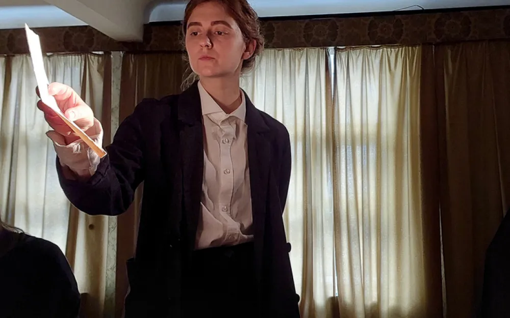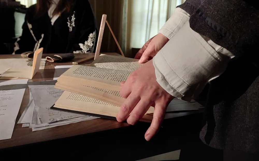 Всю эту тревожную переписку на протяжении действа, идущего менее часа, складывает в серебряную шкатулку жена Немировича-Данченко Екатерина фон Корф в исполнении единственной и безымянной актрисы спектакля Ивана Пачина. Она все приберегает для истории. Все новые и новые документы и свидетельства эпохи она раскладывает перед зрителями на столе.