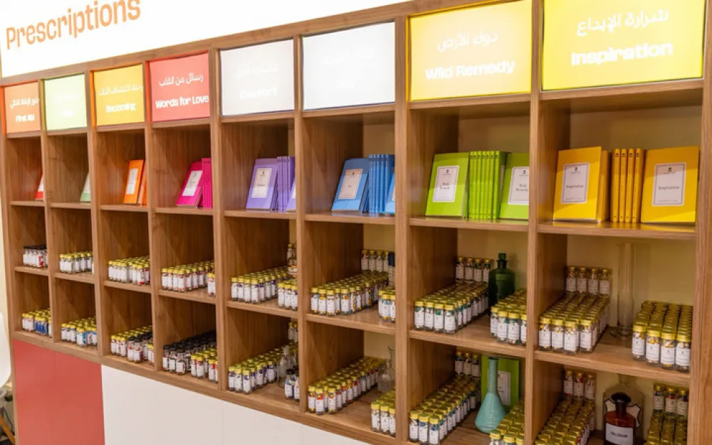 Аптека наполнена множеством бутылочек, так что глаза разбегаются. Как-то выдающийся российский мультипликатор Юрий Норштейн сказал, что голос актера Алексея Баталова обладает терапевтическими свойствами, его можно разливать по бутылочкам и выдавать тем, кто нуждается в исцелении. Так и тут поэзию выдают во флакончиках. Надо только проконсультироваться с британским специалистом прямо на ярмарке.
