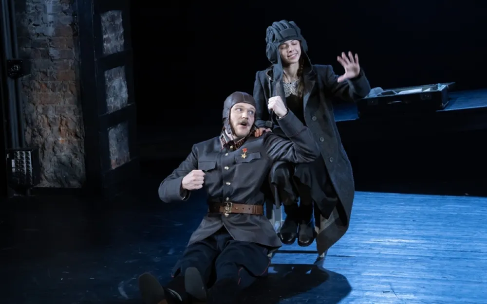 Реалистическая, правдивая проза решена Анатолием предельно правдиво… условными средствами. И в оформлении, и в какой-то степени актерским существованием. Собственно, кроме пары диагональных плоскостей и пары табуреток на сцене ничего нет. Но отчего-то верится, что здесь есть школа и выпускной, техническая лаборатория Дворца пионеров, поле боя, комнаты в коммуналках, каток «Динамо». Здесь взрослеют Сережа (Егор Разливанов), одержимый идеями электротехники, задиристая Танька, увлекающаяся натура, не способная сосредоточиться на чем-то одном, обаятельная отличница Люська (Марфа Пашкова) и веселый такой Володька (Григорий Здоров), в равной степени подсевший на реинкарнацию и ракетные двигатели.