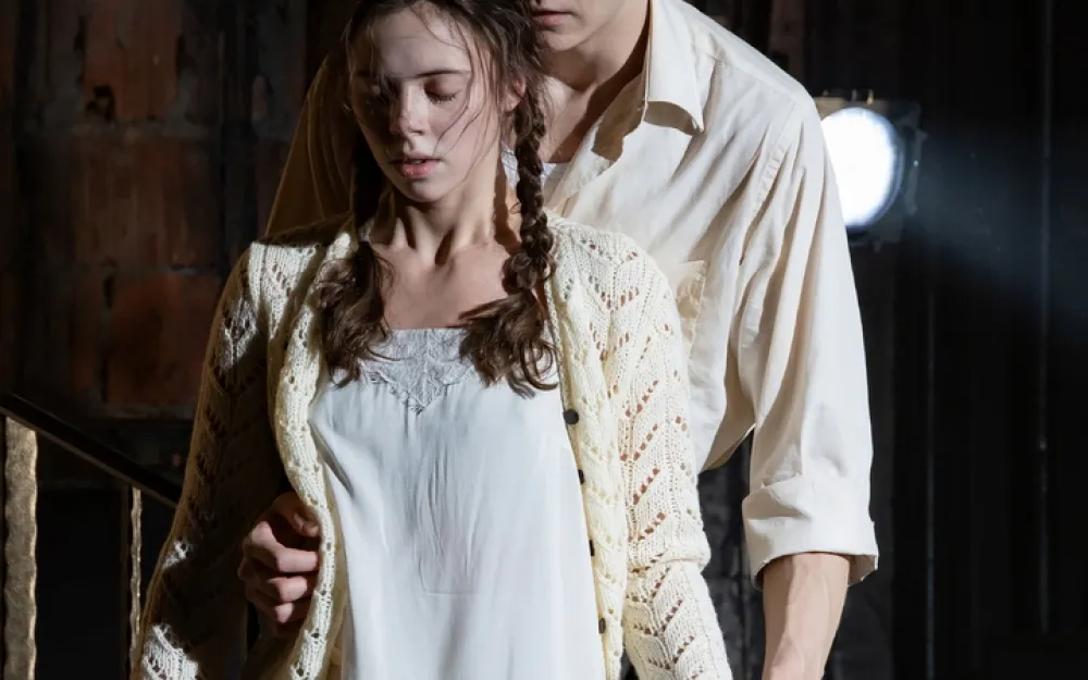 Никто не произносит речей в духе времени про патриотизм, Родину и прочие ценности. Разве что мелькнет в качестве аргумента «комсомольский билет», да и то из уст кокетки Люськи, это и правда смешно. На первом же плане — первое чувство от зарождения любви, которая сама в себе не может разобраться. Растерянность от непонимания, что это она и есть, и как болит/мучит, открывая глаза на себя и все вокруг, — у режиссера, как у ученого, целое театральное исследование. Но не с отстраненным взглядом, а по живому. С трепетом и азартом, весело и с болью артисты вместе с ним постигают науку первой любви и муки. Как будто и нет игры вовсе, а есть жизнь, где все смешалось.