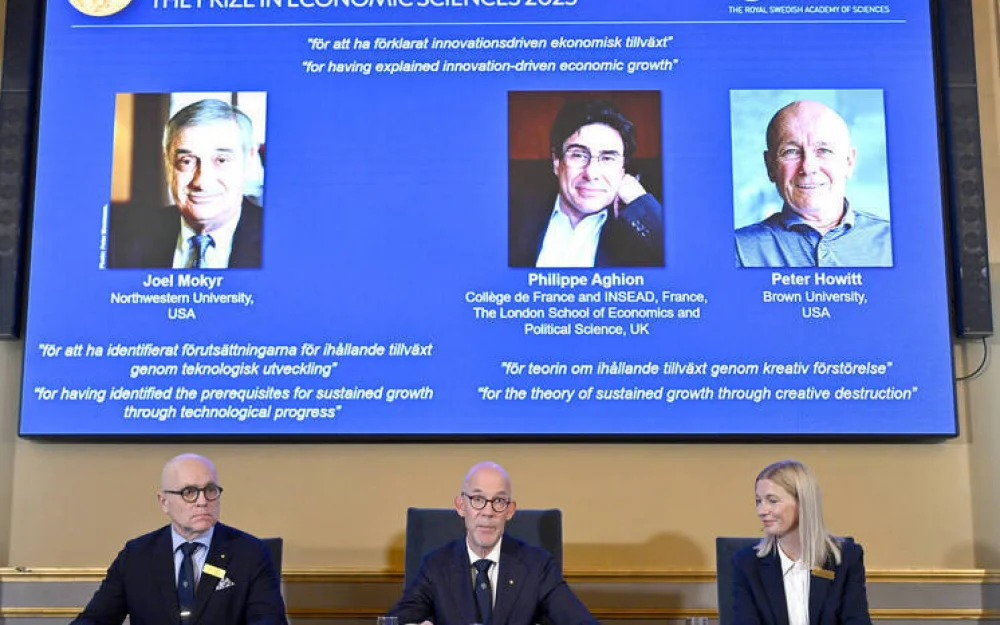 Нобелевская неделя-2025 завершилась в понедельник, 13 октября: Шведская королевская академия наук приняла решение присудить премию Sveriges Riksbank в области экономических наук в память об Альфреде Нобеле за 2025 год Джоэлю Мокиру “за выявление предпосылок устойчивого роста благодаря технологическому прогрессу”, а также Филиппу Агиону и Питеру Ховитту “за теорию устойчивого роста посредством созидательного разрушения”.