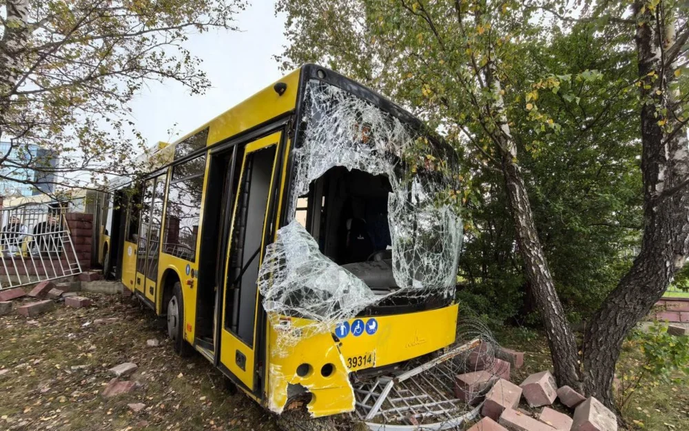 На оживленной улице в Минске автобус врезался в бетонный забор