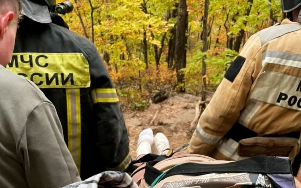 Спасатели МЧС эвакуировали туристку с травмой ноги из ущелья в Приморье