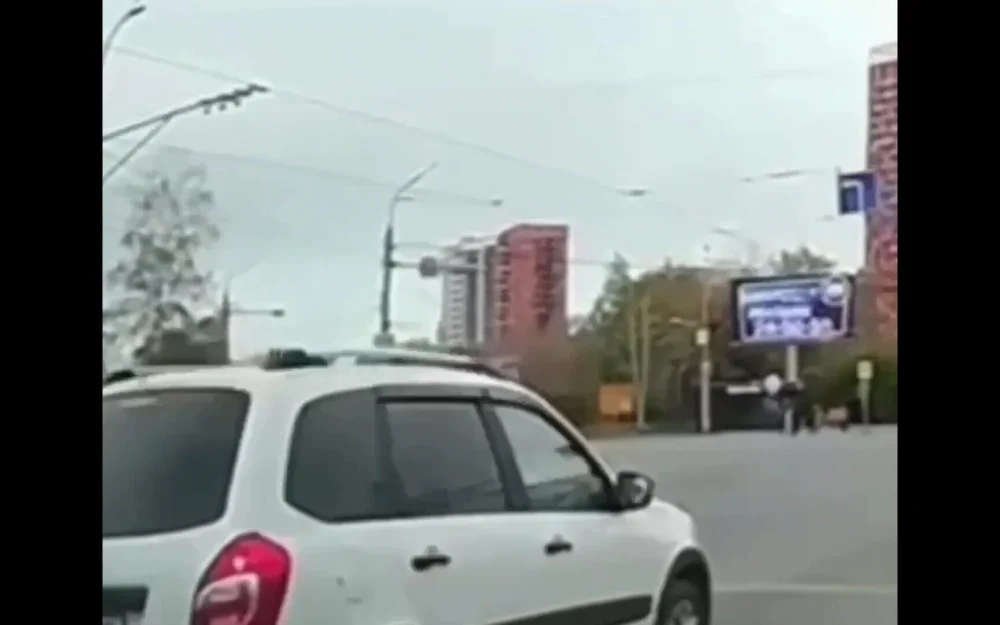 По кадрам видно, что автомобиль на большой скорости проезжает по перекрёстку, после чего слышен звук удара. В это время по пешеходному переходу, по которой проехала иномарка, идут люди. После случившегося, проходящие по зебре люди начинают бежать.