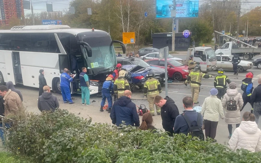 Водитель и три пешехода погибли при столкновении трёх легковых автомобилей и рейсового автобуса в Ижевске, сообщает ГУМЧС по Удмуртии.
