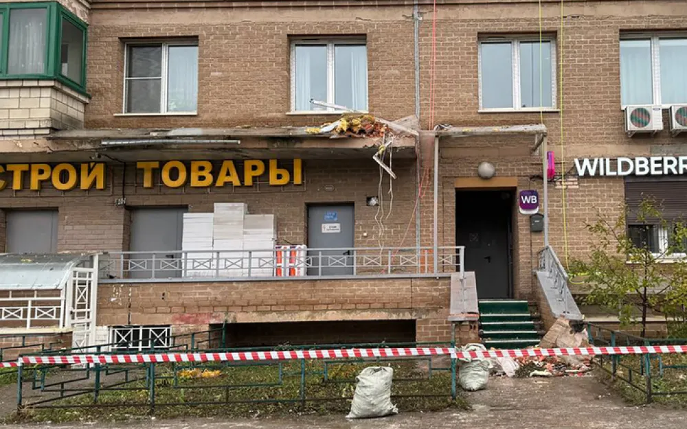 Восемь автомобилей пострадали в результате падения обломков здания после попадания дрона в дом 1 по бульвару Космонавтов в подмосковном Красногорске.