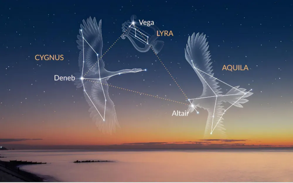 Вечером этот треугольник уже высоко на юго-востоке, а ближе к полночи смещается к зениту, – рассказывает сотрудница МФТИ. – В первую неделю августа он поднимается особенно высоко и наблюдается на протяжении всей ночи. Его составляют три яркие звезды — Вега, Альтаир и Денеб, которые видны даже из мегаполиса. У каждой из них удивительная история.