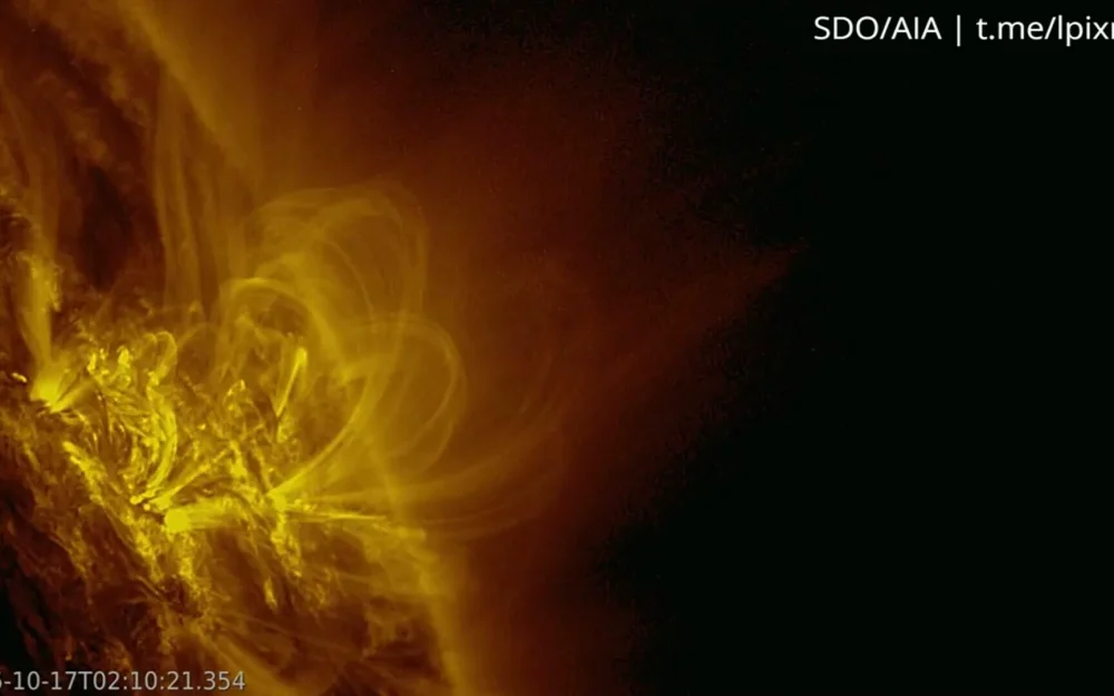"С 15 октября здесь начались крупные выбросы плазмы в плоскости земной орбиты, но к этому моменту активный центр уже ушёл с линии Солнце-Земля. Только первый из выбросов имел возможность задеть планету; остальные формировались уже на полностью безопасном расстоянии", - рассказали учёные.