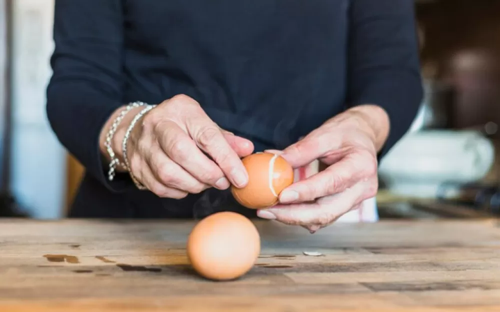 Вы наверняка слышали, что уже полежавшие яйца легче чистятся, — и это действительно так. Это происходит, потому что со временем в скорлупу проникает больше воздуха и она слегка отходит от белка. Но все-таки упростить чистку яиц можно несколькими способами. Первый — достать яйца заранее из холодильника, чтобы они стали комнатной температуры, или подержать их некоторое время в чуть теплой воде. Второй — перед варкой можно аккуратно сделать небольшой прокол с тупой стороны яйца, тогда внутрь попадет воздух. Еще один отличный способ — сварить яйца на очень медленном огне, а затем и подержать их немного под крышкой.