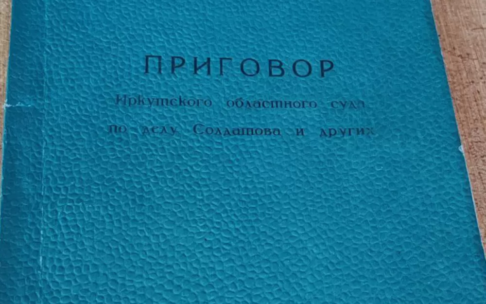 Это, пожалуй, одна из самых необычных книг, которые когда-либо появлялись в нашей стране. Название на синей обложке говорит само за себя: «Приговор Иркутского областного суда по делу Солдатова и других». Первый и единственный в СССР и России случай, когда приговор по уголовному делу издали отдельной книгой. Это произошло в 1979 году, и до наших дней, похоже, дожил один-единственный экземпляр. Почти двести страниц текста. Вместо сюжета — описание больше 100 преступлений.