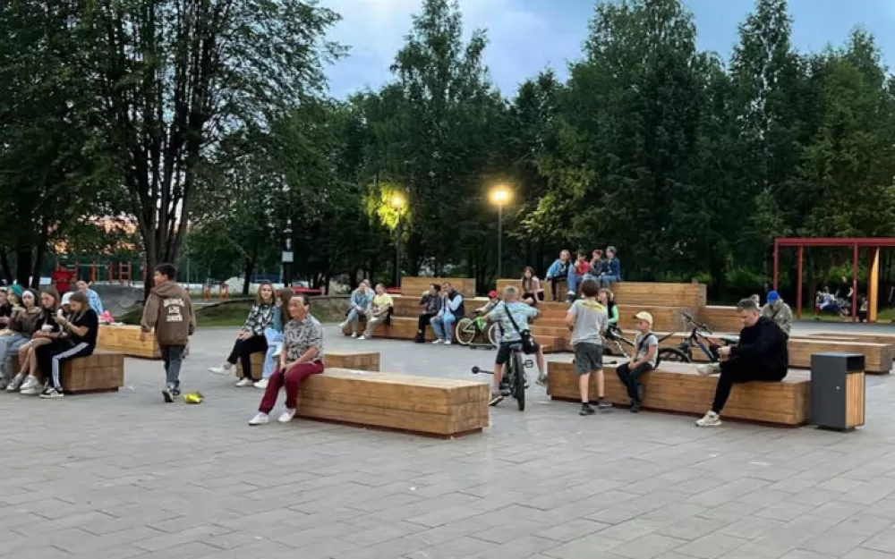 Работы по созданию сквера велись в прошлом году и в первой половине 2024 года. Была обновлена пешеходная зона, появилась сцена, площадки для фуд-корта и игр, арт-объекты и сухой фонтан. В этом году здесь достраивается памп-трек, которому очень рады козьмодемьянские подростки.