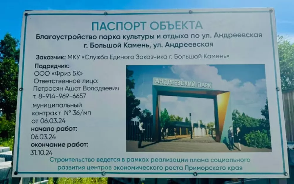 Парк «Андреевский» обещает стать не только современной зоной отдыха, а еще одним символом города у моря. И когда большекаменцы одобрят работы по его благоустройство, а, главное, — полюбят его, можно будет смело сказать, что забота о качестве жизни горожан была проведена в полном объеме.