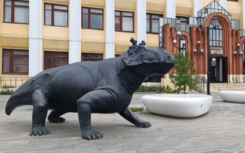 Большерогий олень на улице Советской стоит на скале, которая была рифом в Пермском море. Около фасада Краеведческого музея – отпечаток спирали геликоприона и скульптура эстемменозуха. На «палеонтологической» детской площадке – 12-метровый деревянный геликоприон и сидящий на бордюре карпинскиозавр.
