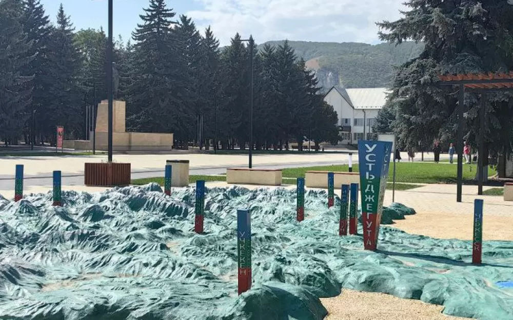 Здесь в игровой форме показаны технологические этапы производства цемента: добыча, транспортировка, измельчение, обжиг, охлаждение, складирование. Также в парковой зоне появился уникальный арт-объект – физическая карта республики с высотными отметками рельефа и указанием всех малых городов и поселений.