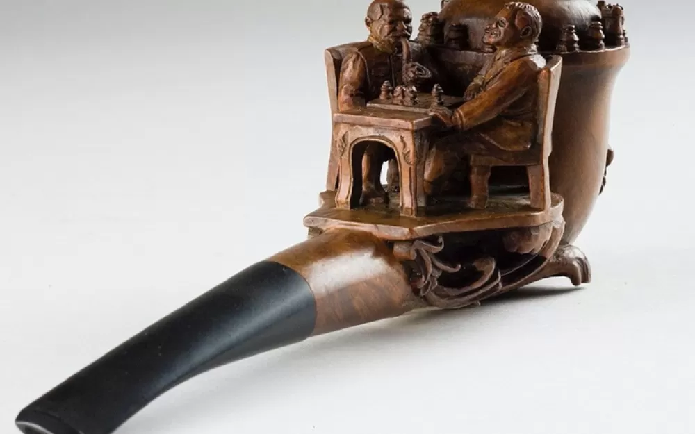 Отдельно стоит упомянуть хранящуюся в коллекции музея трубку под названием «Сталин и Рузвельт играют в шахматы». Ее отправили кремлевскому вождю члены американской сборной по шахматам на память о радиотурнире между командами США и СССР, состоявшемся в 1945-м (в тех заочных поединках победу одержали россияне со счетом 15:5). Чубук украшен скульптурной композицией, показывающей лидеров двух стран за игрой в шахматы. Причем «лучший друг гроссмейстеров» изображен с трубкой в руке.