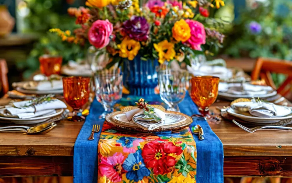Для Масленицы подойдет яркая скатерть, лучше всего с традиционными узорами или рисунками в русском стиле — с цветами, солнцем, птицами или другими символами весны. Салфетки можно выбрать в тон скатерти или контрастных оттенков, например, красные или желтые, чтобы добавить яркости.