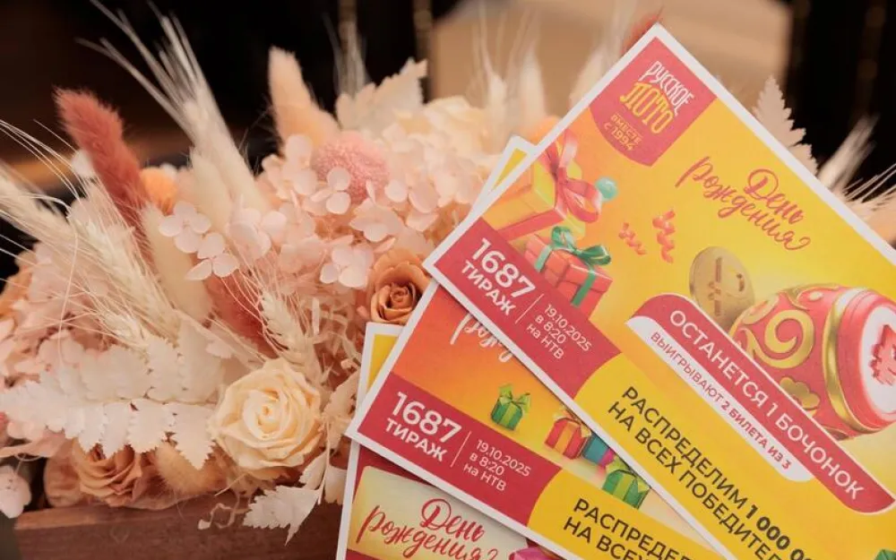 В честь дня рождения главной лотереи страны — «Русского лото»*, билеты которой распространяет «Столото», 19 октября 2025 года пройдет трансляция праздничного 1687-го тиража, в котором гарантированно будет разыграно не менее 1 млрд рублей. В мешке останется один бочонок, а это значит, что выигрышными будут два билета из трех.
