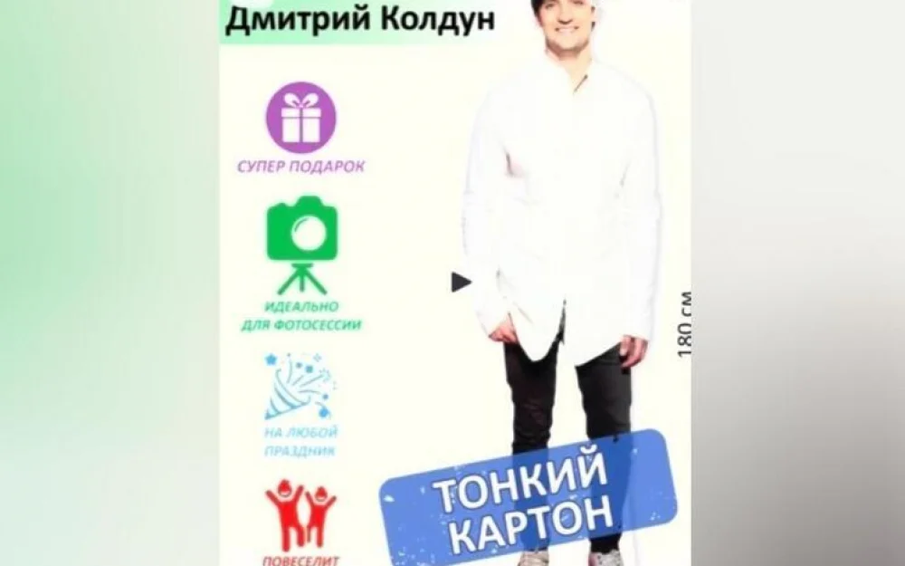 "На упаковке написано: "Дмитрий Колдун. Ростовая фигура". Указано также, кто продавец. Начал раскрывать фигуру - сразу узнал свои кеды на изображении. Рубашка и брюки у меня тоже такие есть. В общем, сходство налицо. Правда, фигура почему-то чуть пониже: истоптался я, похоже", - прокомментировал артист.