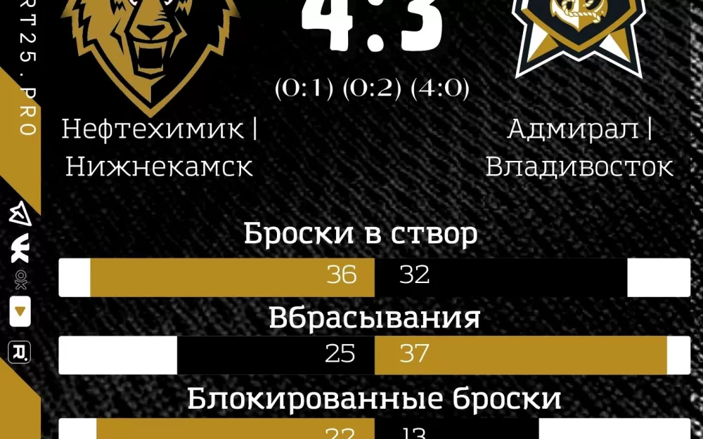 В среду, 18 октября, «Адмирал» завершил очередной выездной тур в сезоне КХЛ 2023/24. «Моряки» уступили нижнекамскому «Нефтехимику» и выдали худшую серию матчей под руководством Леонида Тамбиева, сообщает Спорт 25.
