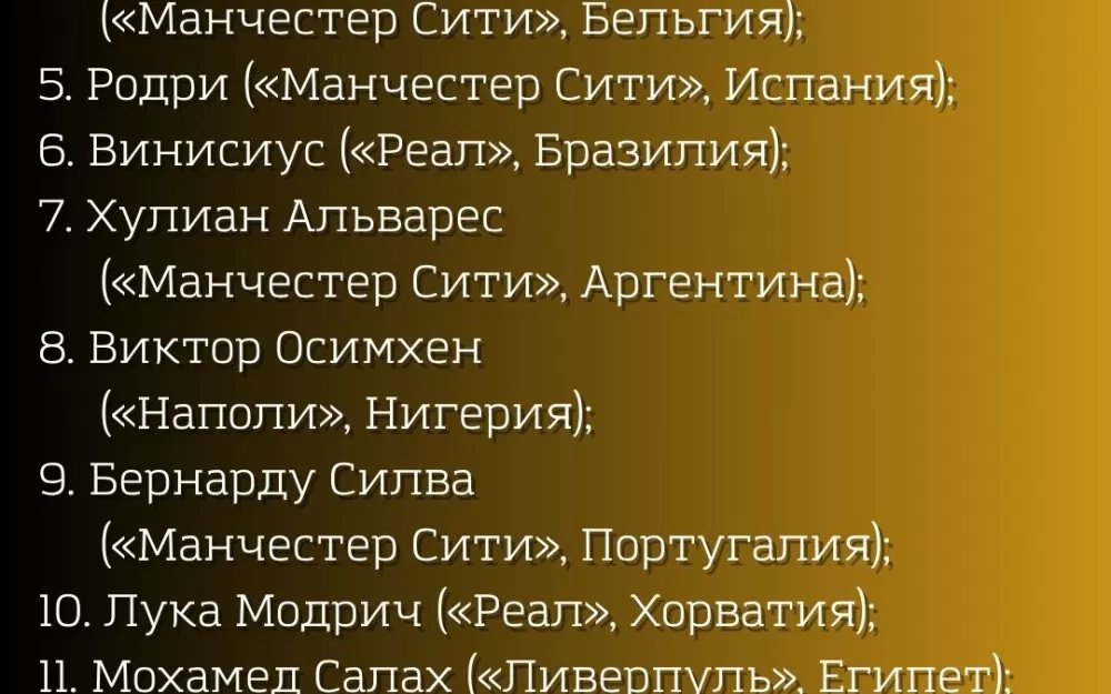 В список претендентов на получение приза «Золотой мяч» 2023 года вошли 30 футболистов. Было мало интриги по поводу того, кто заберёт главный трофей церемонии. Аргентинец Лионель Месси был главным фаворитом. Нападающий «Интер Майами» стал восьмикратным обладателем «Золотого мяча», опередив норвежца Эрлинга Холанна и француза Килиана Мбаппе.