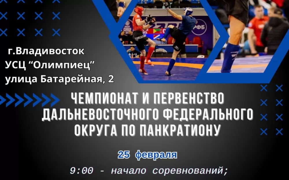 В воскресенье, 25 февраля, во Владивостоке состоятся чемпионат и первенство Дальнего Востока по панкратиону. Местом проведения соревнований станет спорткомплекс «Олимпиец» (ул. Батарейная, 2). Вход для зрителей свободный, сообщает Спорт 25.