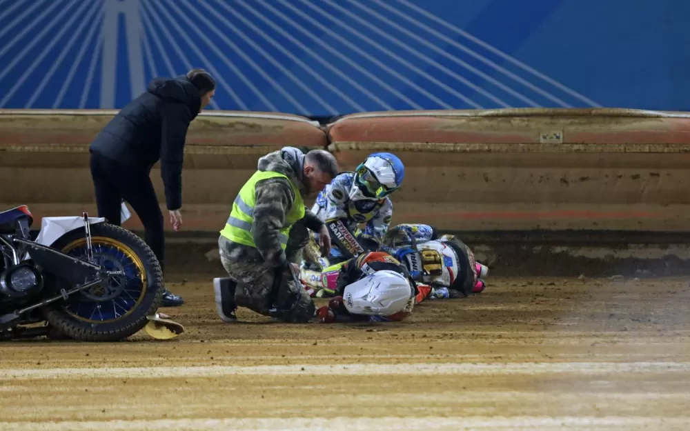 Падений в этой гонке было достаточно. Ранее, в девятом заезде опасный случай произошел с участием гонщиков «Турбины» Кирилла Леймана, Николая Мельникова и гонщика «Башкирии» Рустама Мухтарова. Первые двое смогли подняться самостоятельно. Рустама Мухтарова в итоге увезли на машине скорой помощи.