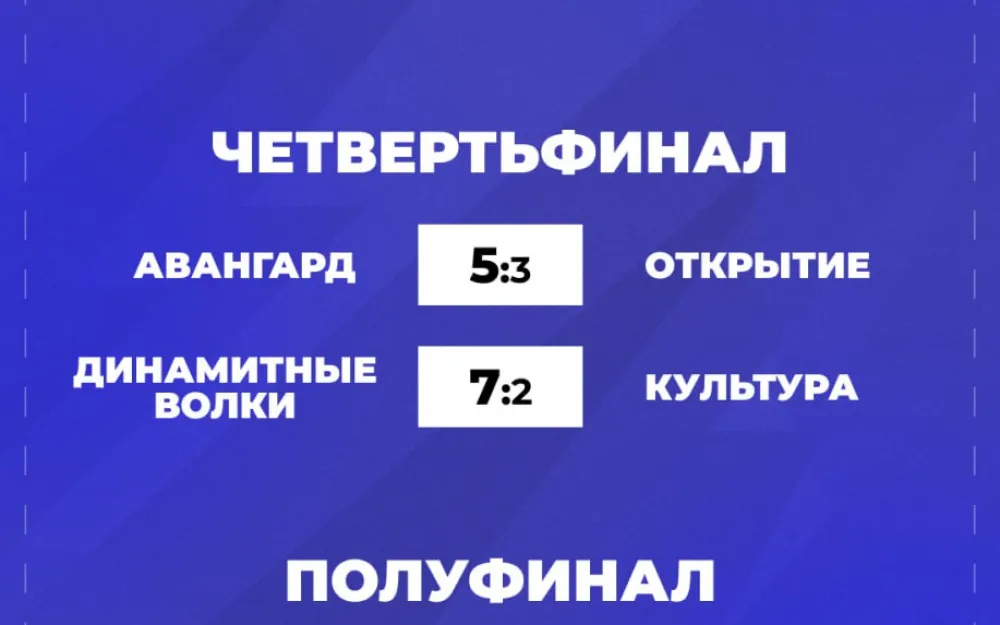 «Динамитные Волки» становятся вторыми финалистами Кубка МГЕР, а «Авангард» отправляется к «Основе» в матч за 3-е место.