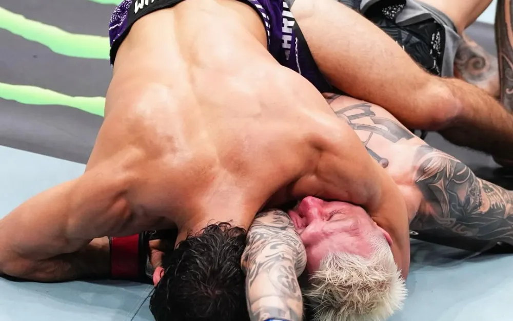Раунд продолжился доминированием Царукяна: после серии жестких комбинаций в стойке он оформил тейкдаун и перевел бой в партер, установив полный контроль над соперником.