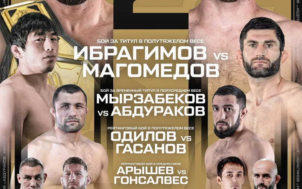 Кульминацией турнира станет бой, который фанаты ждали долгое время. В главном событии вечера сойдутся действующий чемпион Адлан Ибрагимов (9-2) и бывший обладатель титула Муслим Магомедов (15-0), который на сегодняшний день не знает поражений в своей профессиональной карьере. Это противостояние — не просто бой за чемпионский пояс, это столкновение двух амбиций: Ибрагимов хочет подтвердить свой чемпионский статус, а Магомедов — вернуть титул и доказать, что его идеальный рекорд не случайность.
