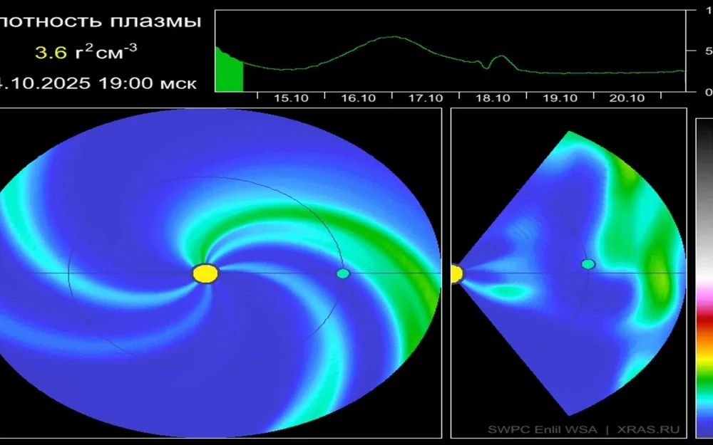 Кроме того, в Telegram-канале Лаборатории опубликована визуализация того, как облако плазмы отделилось от Солнца и прошло мимо Земли. Видно, что один из его краёв практически задел планету.
