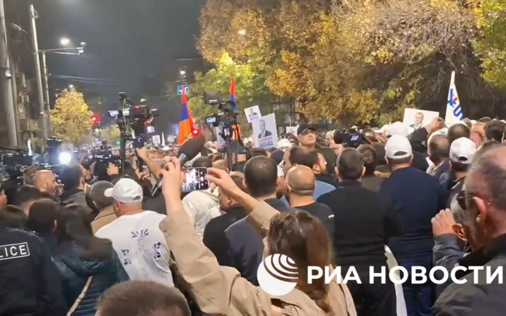 Протестующие сторонники Карапетяна дошли до здания Службы нацбезопасности